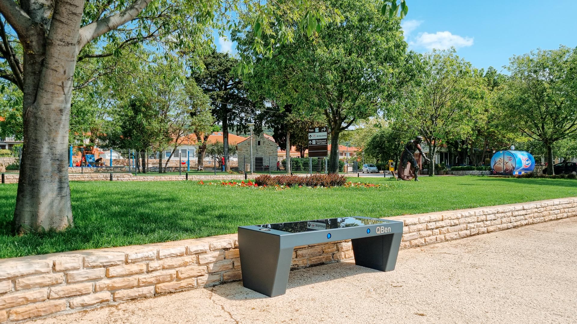 Klasika nikad nije izgledala bolje! Pametna klupa QBen Silver nudi sofisticiran spoj tradicionalnog dizajna i moderne tehnologije. Opremljena s dva USB i dva bežična punjača, ova klupa omogućuje korisnicima da ostanu povezani, dok ugrađena LED rasvjeta stvara ugodan ambijent i noću. S čvrstom konstrukcijom od galvaniziranog i plastificiranog čelika te kaljenog stakla, Silver klupa savršeno se uklapa u svako okruženje, bilo urbano ili ruralno.